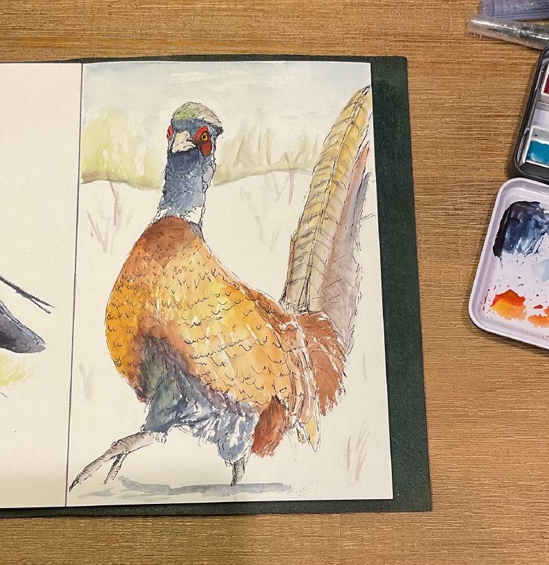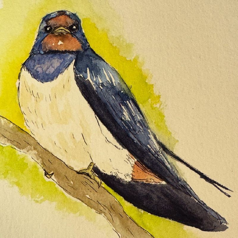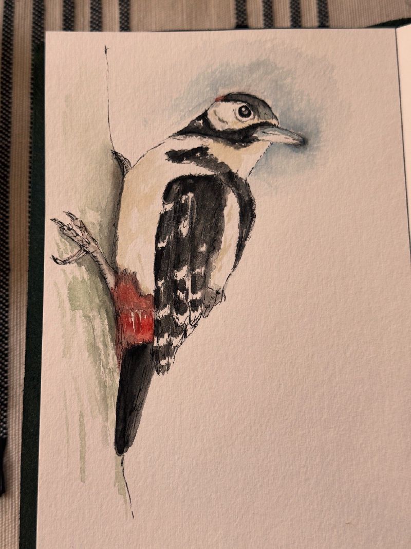 I took a short online course on watercolor bird sketching led by Sofia Garzaran. I was tempted by Sofia’s invitation to approach sketches with the goal of letting go of perfection, keeping the sketch time short (15-30 mins), and using only a pen and water brush. I really liked that last constraint, because for a while I’ve felt overwhelmed by my own art supplies. This course was liberating.